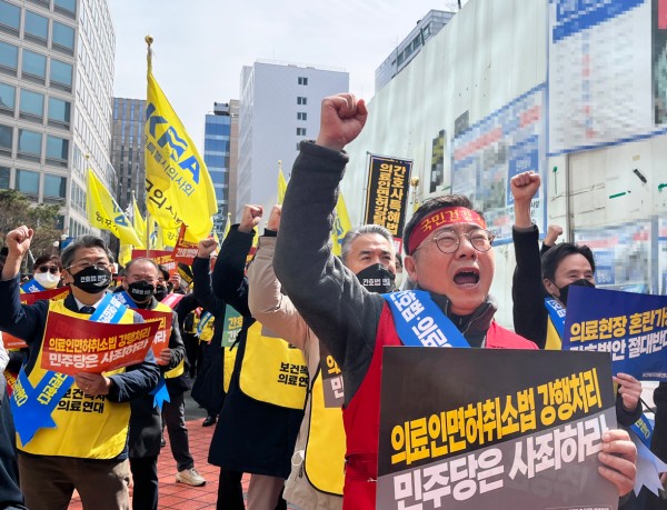 의협 비대위 방침에 따라, 오는 3월 16일 (목) 오후 1시, 전국 각지의 더불어민주당 경기도당사 앞에서 의사면허박탈법, 간호단독법을 강행처리 규탄 집회를 진행하였습니다.