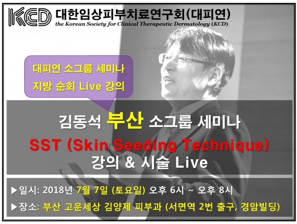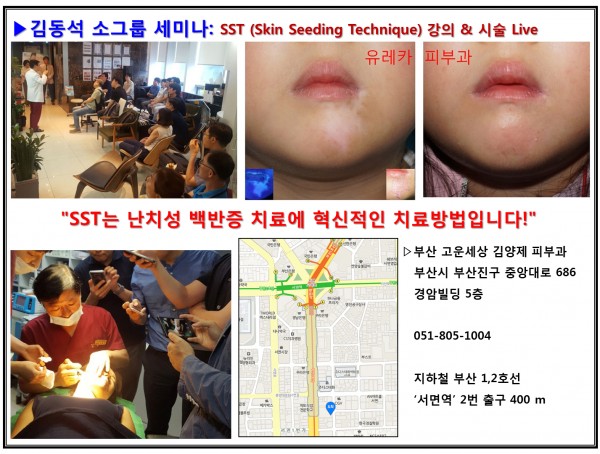 김동석 대피연 명예회장님은 널리 알려진 바와 같이 ‘SST (Skin Seeding Technique)’를 개발하여 백반증 치료에 새로운 시대를 열고 있습니다. 이번 소그룹 세미나에서도 SST의 모든 것을 강의와 Live를 통하여 전수해 드리는 시간을 갖을까 합니다.