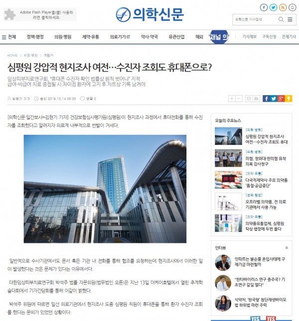 [의학신문]심평원 강압적 현지조사 여전…수진자 조회도 휴대폰으로?