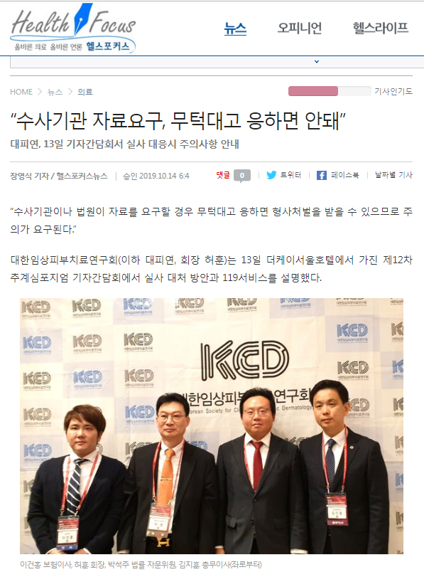 [메디포뉴스]대한임상피부치료연구회, 현지조사 등 법률대응 ‘대피연119’ 서비스는 '實事求是'