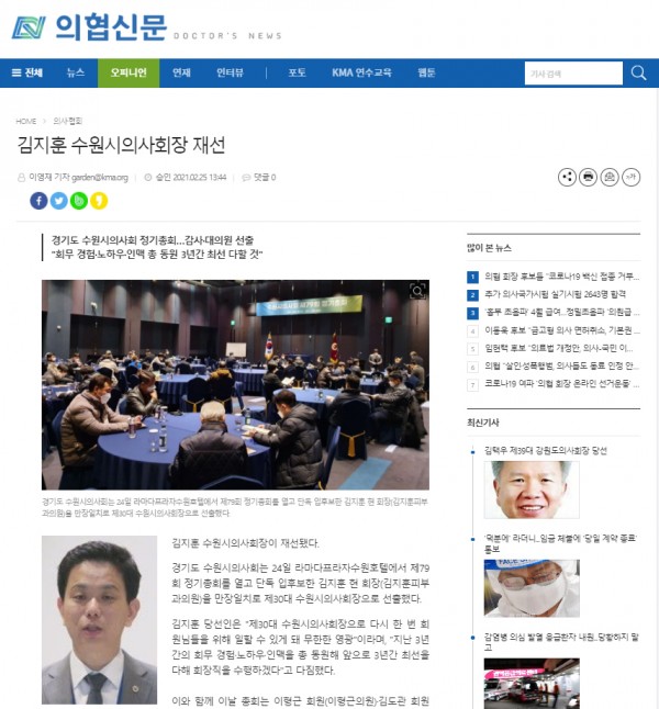 본 회 김지훈 총무이사 제30대 수원시의사회장 재선