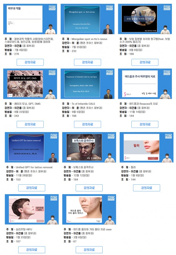 총 11차례에 걸친 온라인 세미나를 통하여, 그동안 많이 다루지 못했던 기본적인 내용부터 최신 치료기술까지 다양한 분야를 회원님들과 공유하는 시간을 가졌습니다. 많이 부족한 온라인 세미나 였지만 많은 회원님들께서 참여해 주셨습니다.