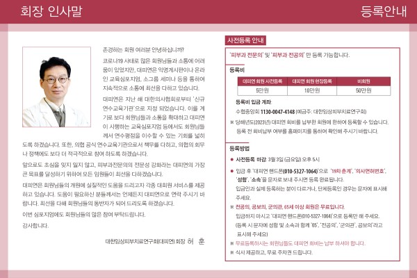 ▷회비 납부 계좌: 수협중앙회 1010-1194-4728 (예금주: 대한임상피부치료연구회)