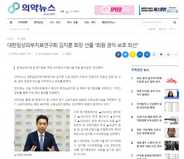 [보건신문]임상피부치료연구회, 김지훈 제5대 회장 선출 "회원권익 보호 앞장“