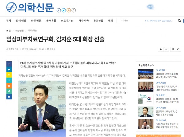 [의사신문]임상피부치료연구회 심포지엄 개최, 신임 회장에 김지훈 수석부회장 추대