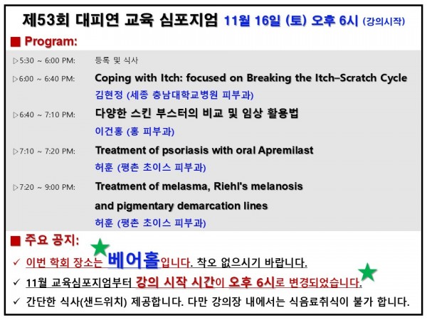 ■ 제53회 대한임상피부치료연구회(대피연) 교육심포지엄