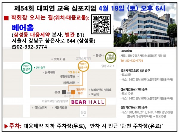 ▷‘베어홀’ 오시는 길 (교육심포지엄 학회장소: 위치, 대중교통, 주차)