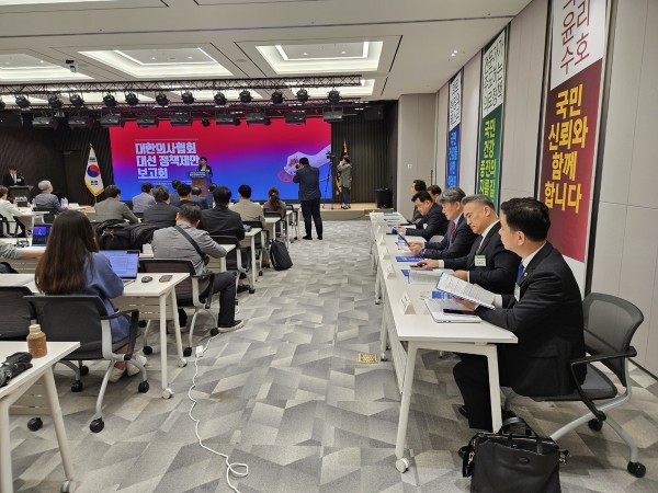 이날 정책제안 보고회는 의협이 제21대 대통령 선거를 앞두고 대선 후보들에게 합리적인 보건의료 정책을 제안하기 위하여 준비되었습니다. 자세한 내용은 아래 보도자료 참고 부탁드립니다.