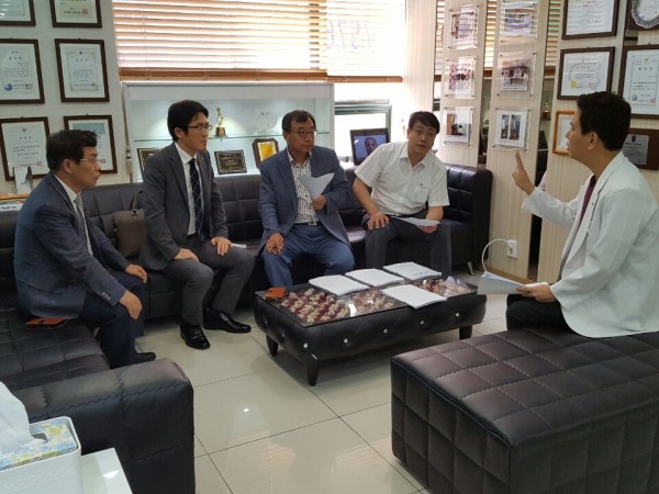 새누리당 당 대표 이정현 의원이 본 회 김지훈 총무이사 병원을직접 방문하여 현장의 목소리를 청취 하였다. 이정현 의원은 경기도의사회(회장 현병기) 중재로 지난 8월 20일 경기도 소재 1차 의료기관을 방문하여 현장의 목소리를 청취하는 시간을 가졌다.