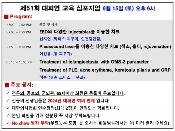 ■ 제51회 대한임상피부치료연구회(대피연) 교육심포지엄