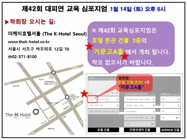 ※“호텔 본관 건물 3층”의 “거문고A홀”에서 개최 됩니다. 착오 없으시기 바랍니다.
