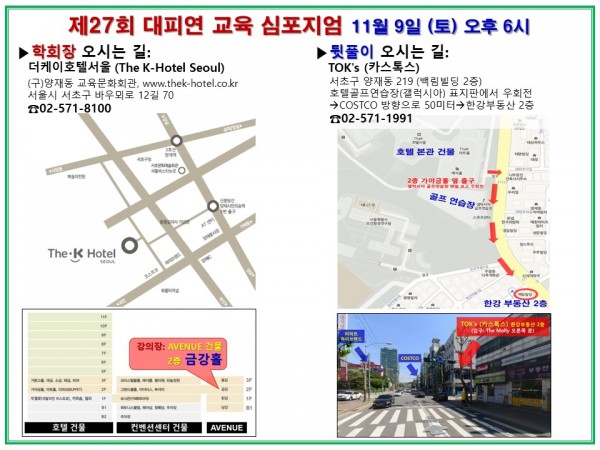 지난 11월 9일 토요일 더케이서울호텔에서 열린 제27회 대피연 교육심포지엄에 참석해 주신 여러 회원님들께 진심으로 감사드립니다.