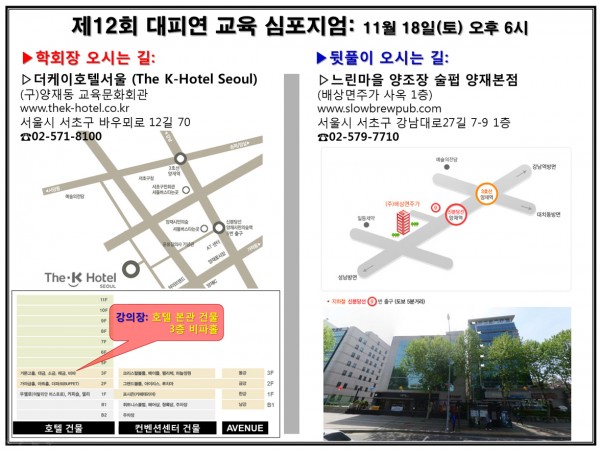 ※교육심포지엄 장소가 기존의 에비뉴건물이 아닌 호텔 본관 건물 “비파홀”입니다. 착오 없으시기 바랍니다.