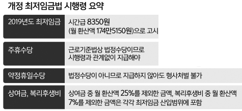 정부가 2018년 12월 24일 내놓은 최저임금법 시행령 개정안에서 수정된 부분은 경영계가 “약정휴일 수당과 시간이 최저임금 산정에 고려되면 부담이 커진다”고 새롭게 이의 제기한 부분을 제외한 내용이다.