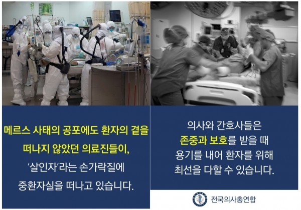 전의총 캠페인과 한 의사 커뮤니티에 올라온 글을 발췌해 봤습니다.