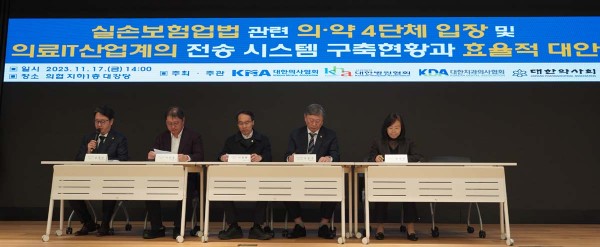 대한의사협회(회장 이필수)를 비롯한 대한병원협회, 대한치과의사협회, 대한약사회 등 의약4단체는 11월 17일 기자회견을 개최하여 실손보험업법에 대한 입장을 발표하고, 이후 관련 의료 IT 업체의 시스템 구축현황과 배포상황에 대한 보충 설명과 함께 효율적인 대안을 제시했다.