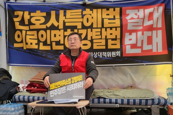 저는 지난 13일부터 이곳 국회 앞 천막에서 철야농성을 지속하며, 간호사특혜법과 의료인면허강탈법이라는 희대의 의료악법들을 반드시 저지하겠다는 굳은 의지를 보여왔습니다.