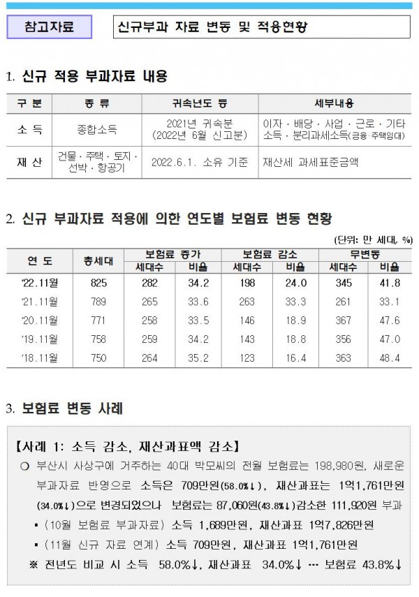 [건보공단]‘22.11월분 건강보험료부터 새로운 부과자료(2022년도 재산과표, 지방자치단체)를 반영