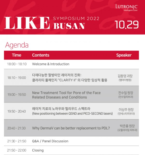 [Lutronic]“부산” LIKE symposium 10.29(토)서면롯데호텔