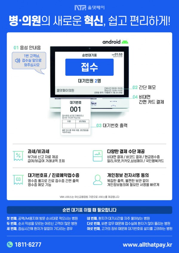 대피연과 업무제휴가 되어있는 카드단말기회사인 '올댓페이'에서 개발한 ‘번호표’기능이 추가된 카드 단말기 소개해 드립니다.