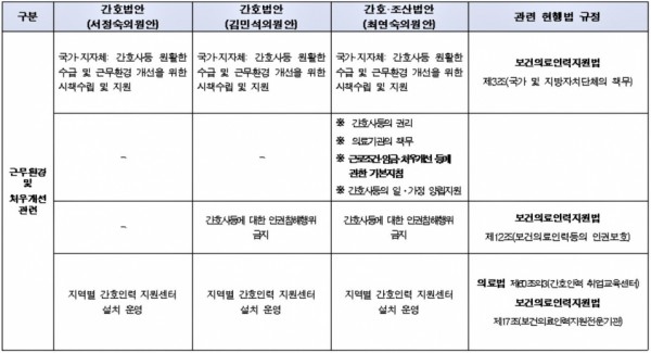 이후 보건복지위 전문위원실의 경과 보고가 이어졌다. 전문위원실은 지난해 11월 24일 보건복지위 1법소위 심사 유보 단서조항(보건복지부가 유관단체와 협의해 합의안 도출)과 관련해 그동안 보건복지부와 유관단체와의 협의 경과, 선진 각국의 간호법 제정 현황 등을 보고했다.