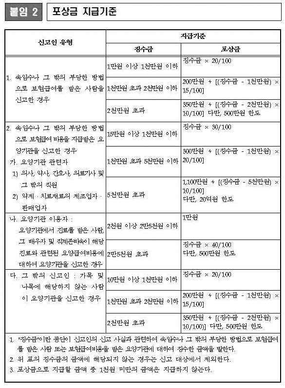 [건보공단]진료비 거짓·부당청구 제보자(내부자 등)에게 포상금 지급(포상금 지급 사례.기준)