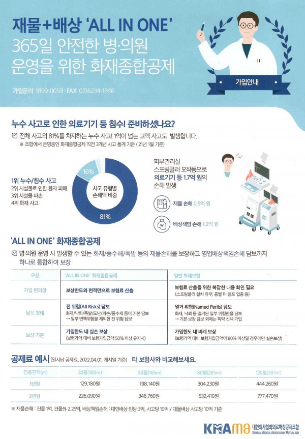 [의협배상공제]All in One 화재종합공제(스프링쿨러 오작동 등 누수 사고로 인한 의료기기 침수 대비)