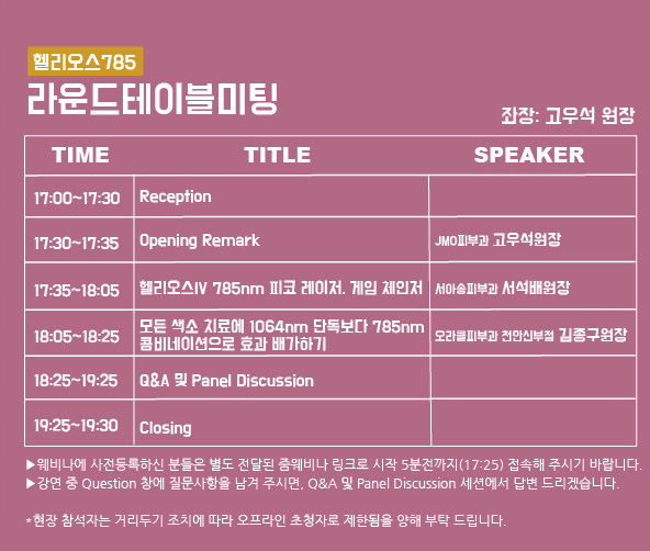 [레이저옵텍]“헬리오스785” Round Table Meeting(10/2토)“On-line Zoom Webinar”