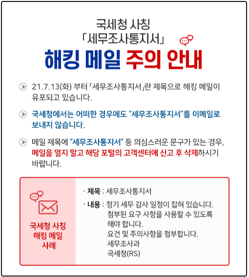 국세청 사칭 ‘세무조사 통지서’ 해킹 메일 주의 안내 대피연 메일보내기 이름으로 검색 0 12,535 2021.07.15 14:01 첨부파일 - 첨부파일: 해킹메일.jpg (169.5K) 493 짧은주소 - 짧은주소: https://laserpro.or.kr:443/bbs/?t=8nj 주소복사 × 짧은 글주소 복사 Note! 위 주소를 드래그, 복사(Ctrl+C)하여 사용하세요. 이전글다음글 목록 본문 국세청 사칭 ‘세무조사 통지서’ 해킹 메일 주의 안내 이전글다음글 목록 댓글목록 등록된 댓글이 없습니다.