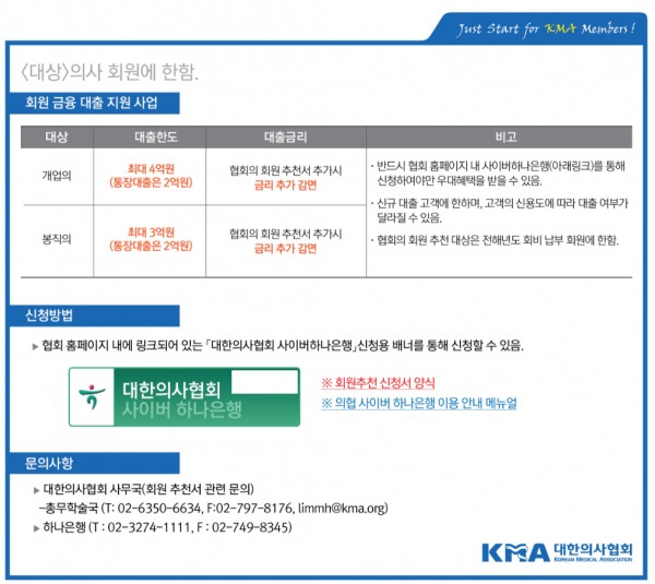 대한의사협회·사이버하나은행 회원대상 제휴대출 안내