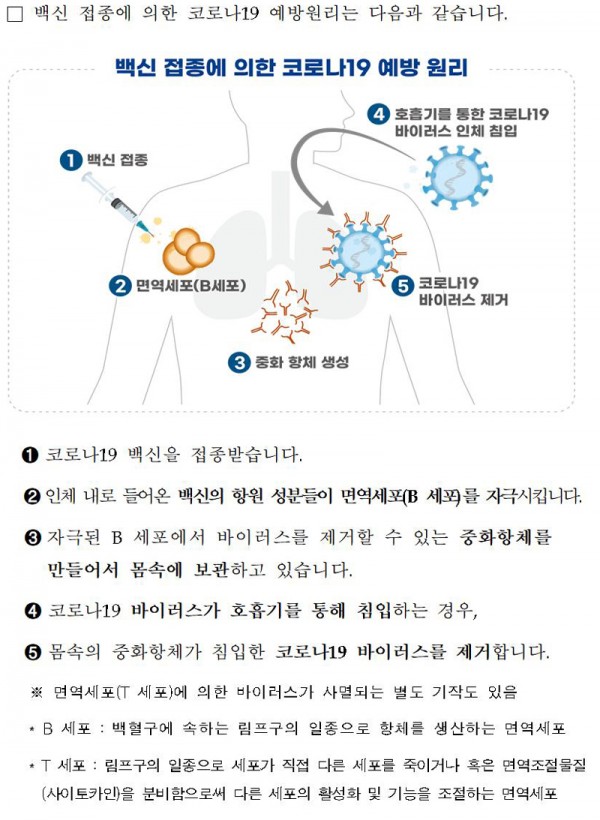 □ 백신 접종에 의한 코로나19 예방원리는 다음과 같습니다(그림1).