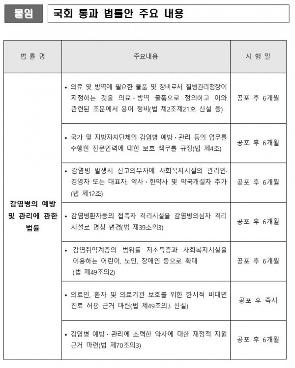[질병관리청]’감염병의 예방 및 관리에 관한 법률‘ 12월 2일 국회 본회의 통과