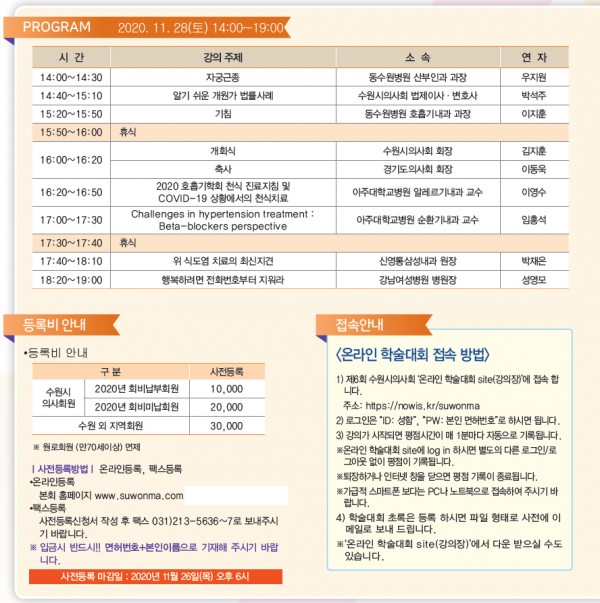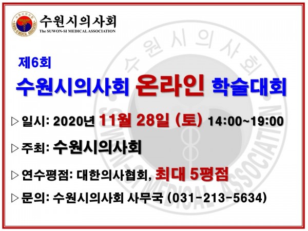 제6회 수원시의사회 “온라인” 학술대회(5평점)11/28(토)