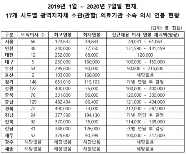 - 도시보다는 농어촌 지역에 의사가 부족한 상황이 광역지방자치단체가 운영하는 공공의료원 연봉액에서 여실히 나타나고 있다.