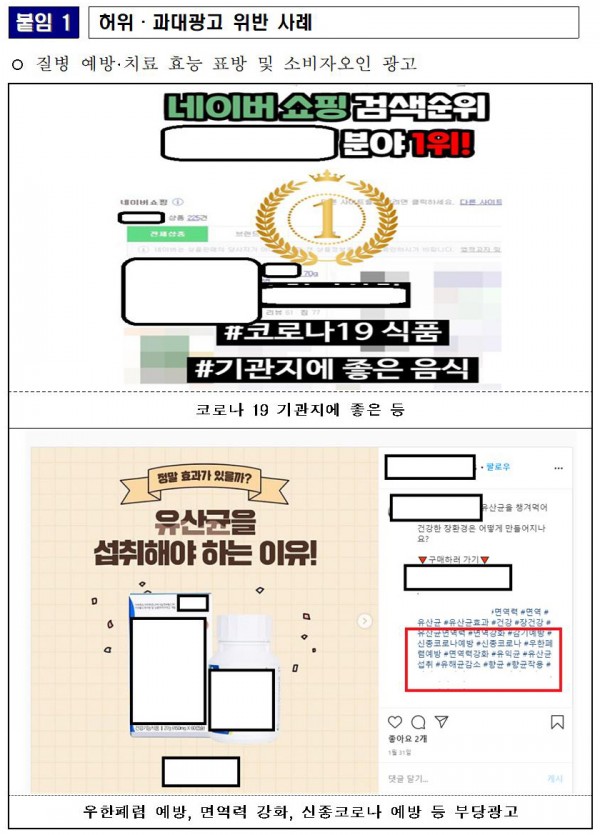[식약처]코로나19 예방 또는 치료 효능.효과를 표방한 허위.과대광고 적발