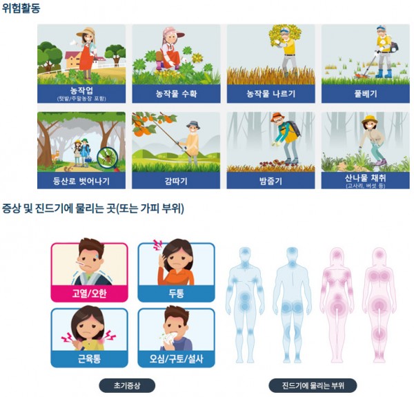 쯔쯔가무시증은 10월~11월에 호발하고, 중증열성혈소판감소증후군(SFTS)은 주로 5월~10월에 발생합니다.