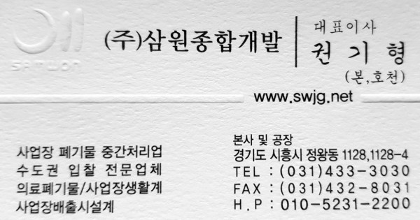 적출물.의료 폐기물 수거 업체(삼원종합개발)
