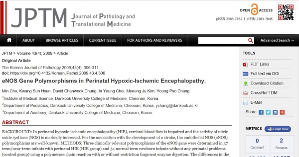 한데 고2 학생이 다음과 같은 제목의 논문을 쓸 수 있을까요?  '주산기 저산소성 허혈성 뇌병증에서 eNOS 유전자 다형성'.