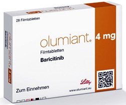 미국 FDA, 한국 등에서 올루미언트라는 제품명으로 승인됐다. 먹는 류마티스관절염 치료제 선발주자인 화이자제약의 젤잔즈가 1일 2회 복용하는 것과 달리 1일 1회 복용법으로 빠르게 시장을 점유하고 있다.