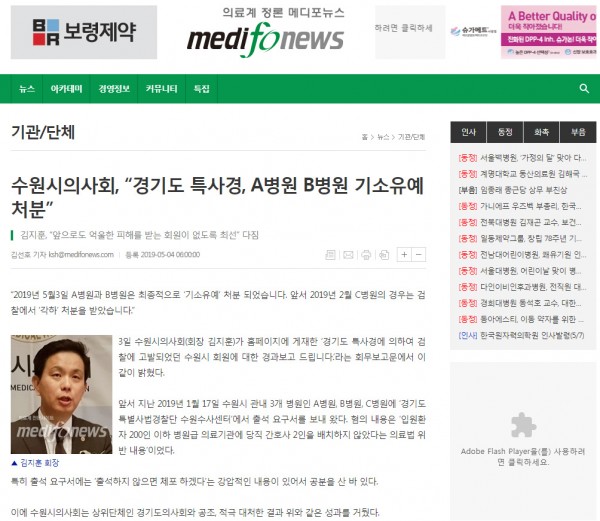 수원시의사회 김지훈회장, “경기도 특사경, A병원 B병원 기소유예 처분”