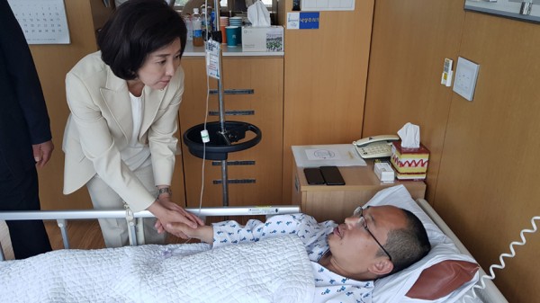 한편 이날 나경원 원내대표와 김명연 국회의원 이외에도 추무진 국제보건의료재단 이사장(전 의협회장), 전시형 대한의과대학·의학전문대학원학생협회 회장, 이찬희 대한변호사협회 회장 등이 최 회장의 병실을 다녀갔다. 저녁에는 의쟁투 위원장단이 회의를 마친 뒤 최 회장을 위로 방문할 예정이다.