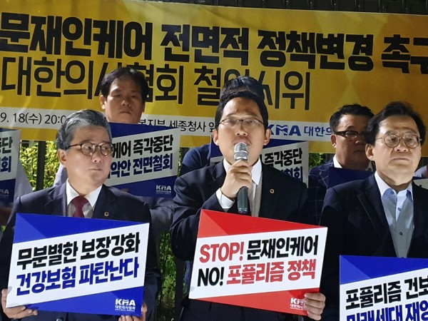 [의협]문재인케어의 전면적 정책 변경 요구(세종 복지부 앞 철야시위)