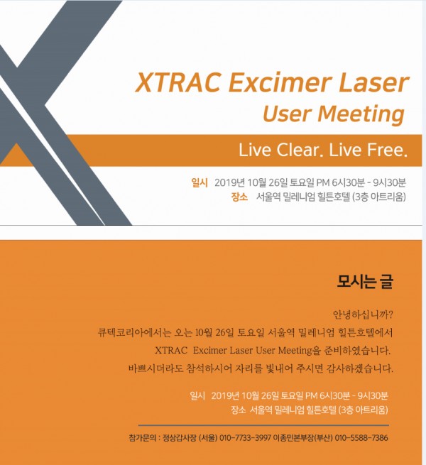 ▷XTRAC Excimer Laser User Meeting, 10/26(토)