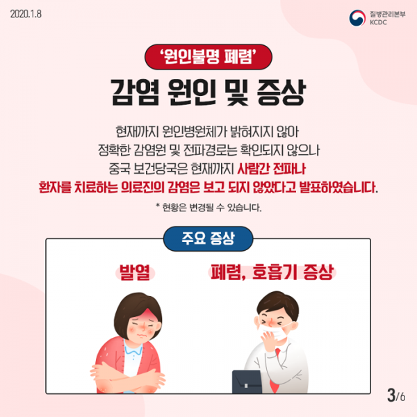 질병관리본부는 1월 3일(금)부터 중국「우한시 원인불명 폐렴 대책반」을 가동하고, 긴급상황실 24시간 대응체계를 운영중이다.