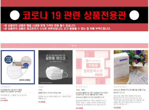 의사장터 코로나19 관련상품 전용관 (각종 마스크, face shield)