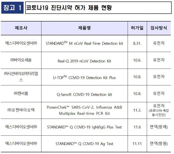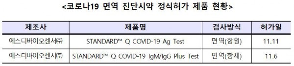 - 검사방식별 항원 1개·항체 1개 제품 신규 허가