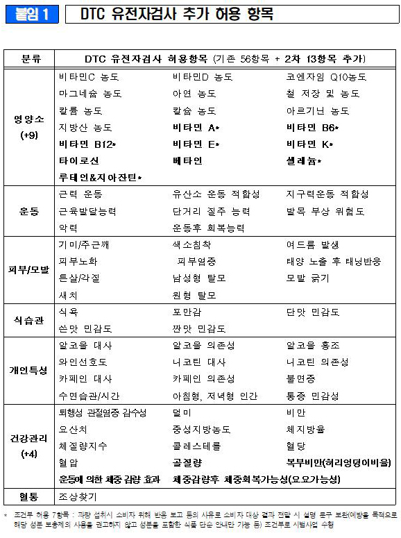 1. DTC 유전자검사 추가 허용 항목