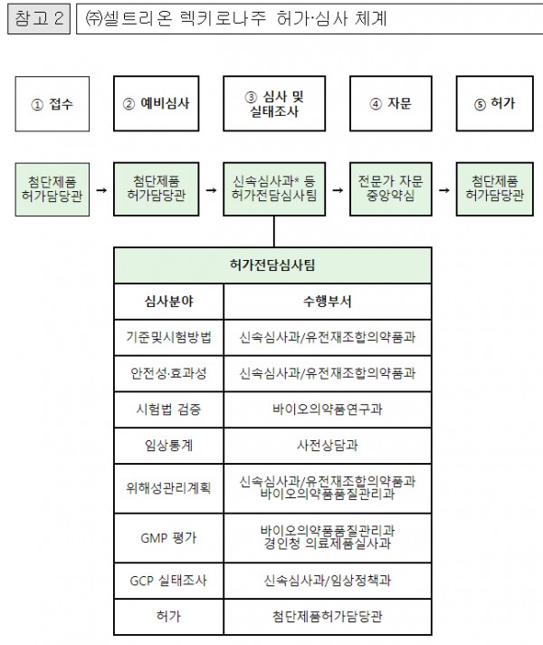 이번 허가·심사는 일반적인 의약품 허가 절차와 같이, 제조업체인 ㈜셀트리온이 허가신청서와 관련 자료를 식약처 ‘의약품안전나라’(전자민원창구, nedrug.mfds.go.kr)에 제출하면서 개시됐습니다.