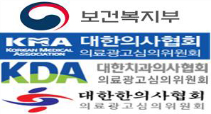 * 의료광고 자율심의기구 : 의료법 제57조제2항에 따라 ①대한의사협회(의료광고심의위원회), ②대한치과의사협회(치과의료광고심의위원회), ③대한한의사협회(한방의료광고심의위원회)에서 설치·운영 중