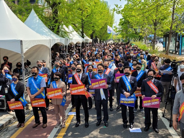 많은 시민들이 완연한 봄기운 속에 가족들과 함께 봄나들이에 나서는 지금, 대한간호조무사협회, 대한병원협회, 대한응급구조사협회, 대한의사협회, 대한치과의사협회, 한국노인복지중앙회, 한국노인장기요양기관협회, 한국요양보호사중앙회, 한국재가노인복지협회, 한국재가장기요양기관협회 이상 10개 단체가 국민 여러분들께 간호단독법의 폐해를 알리기 위해 대한민국 입법기관인 국회 앞에서 동료들과 함께 카메라가 아닌 피켓을 들고 이 자리에 모였습니다.